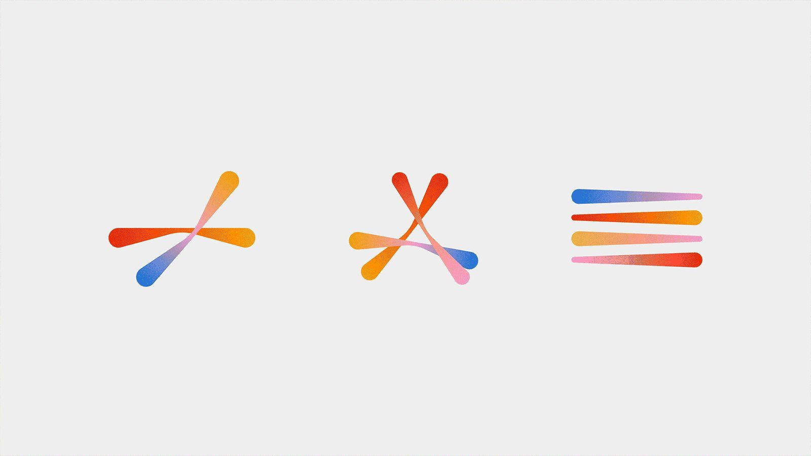 This is a set of abstract, minimalist graphic marks characterized by intersecting lines forming an 'X' shape. The design utilizes a vibrant yet soft color palette to create dynamic visual interest against a neutral background. The overall feel is modern, playful, and clean.
