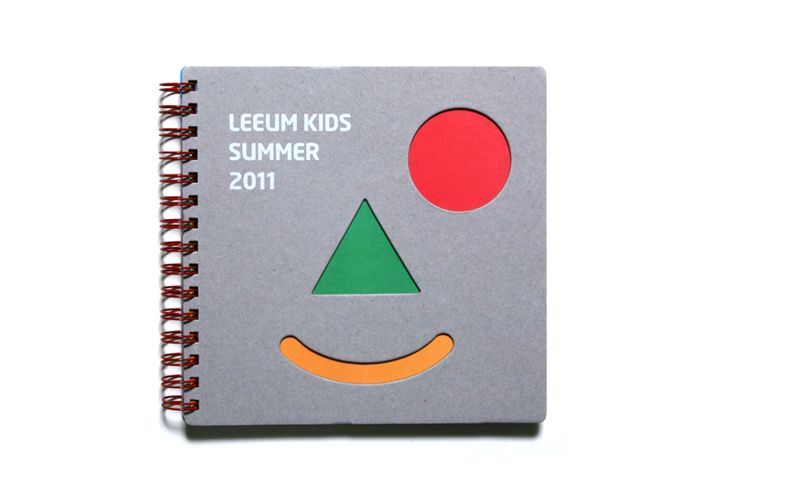 This design features a clean, minimalist approach combining simple geometric shapes with playful illustration. The visual language is straightforward and innocent, utilizing bold primary and secondary colors against a neutral gray background to create a charming aesthetic.