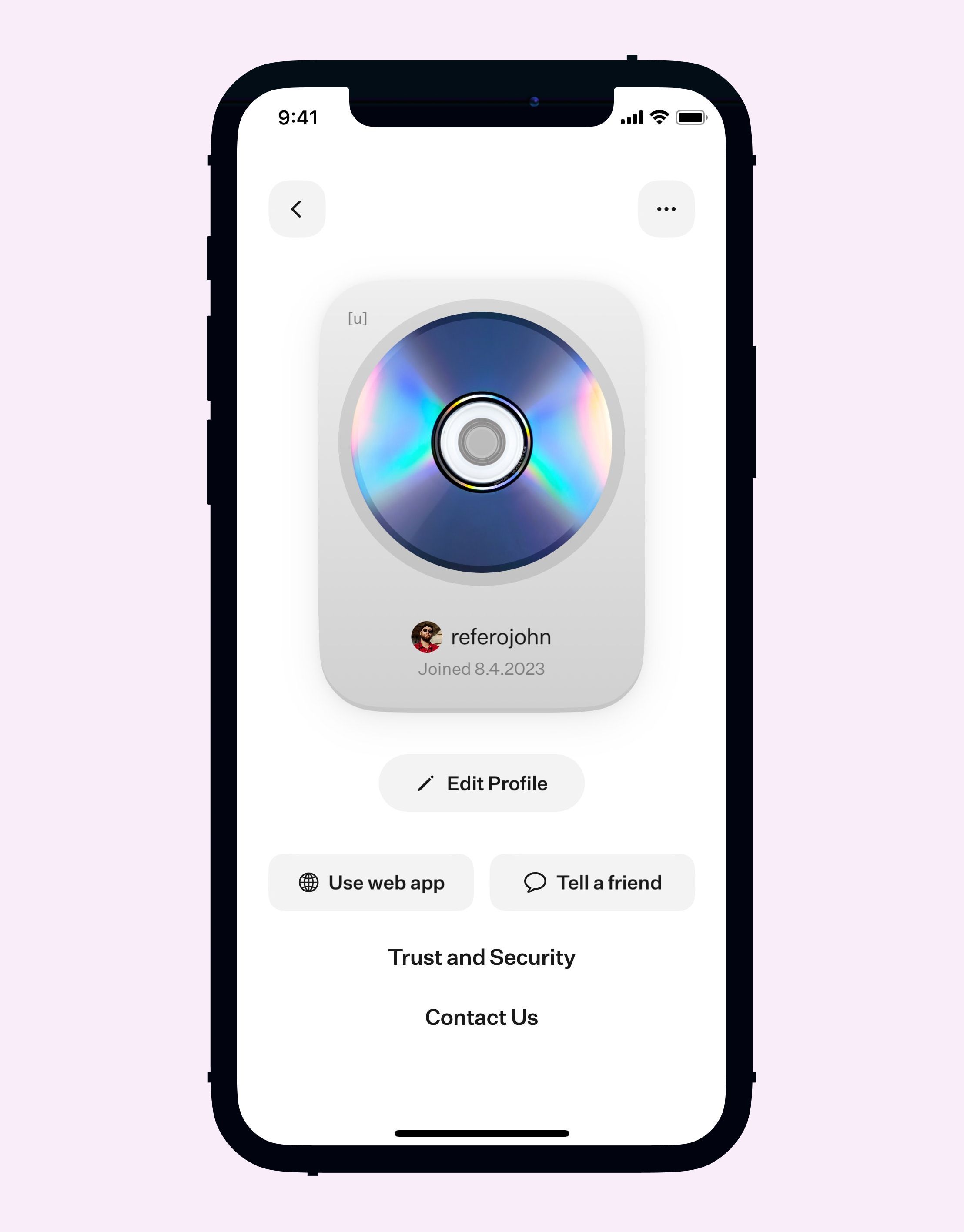 This interface demonstrates a clean, modern mobile user interface characterized by ample white space and clear hierarchy. The design relies on subtle gradients and simple iconography to present user information and actionable links in a highly accessible manner.