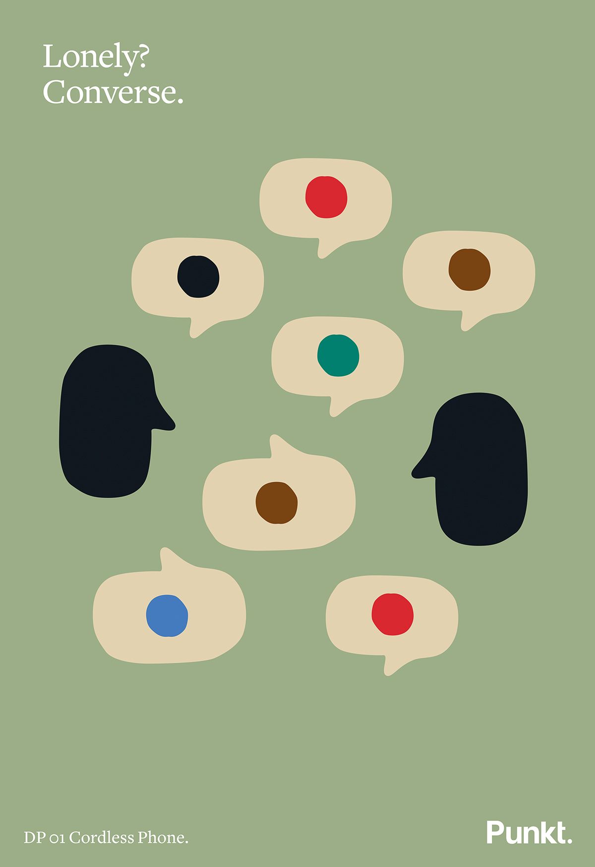 This is a minimalist and clean graphic design featuring speech bubbles and silhouette icons against a muted, earthy green background. The design uses simple shapes and limited color variation to convey a sense of conversation or connection.