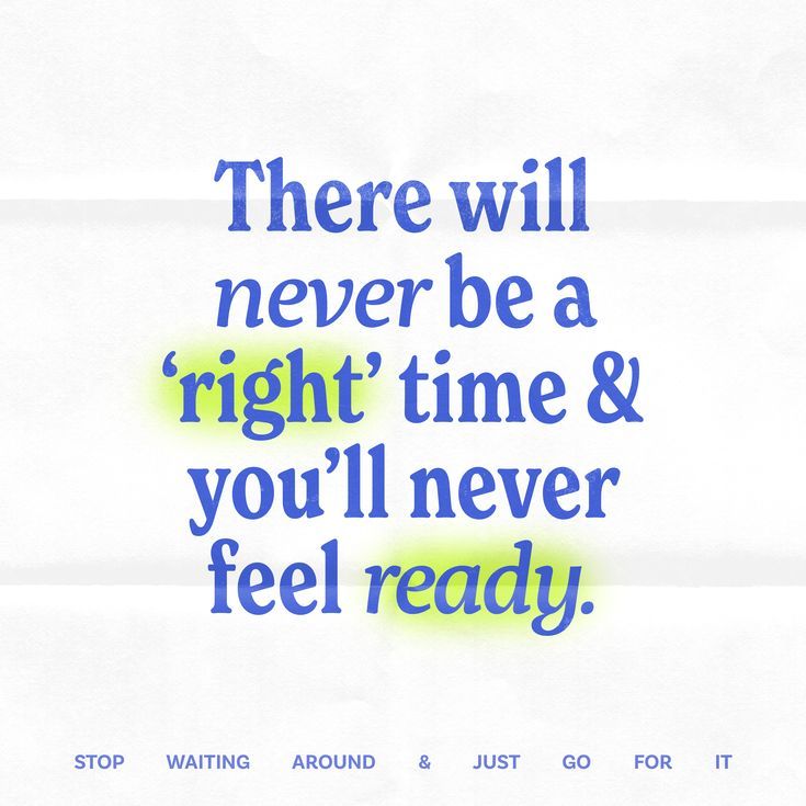 A motivational typographic design featuring an inspirational quote in bold blue serif typography with neon yellow highlights. The composition uses a clean, centered layout with a subtle textured background and a secondary message in smaller caps at the bottom, creating a modern yet approachable aesthetic.