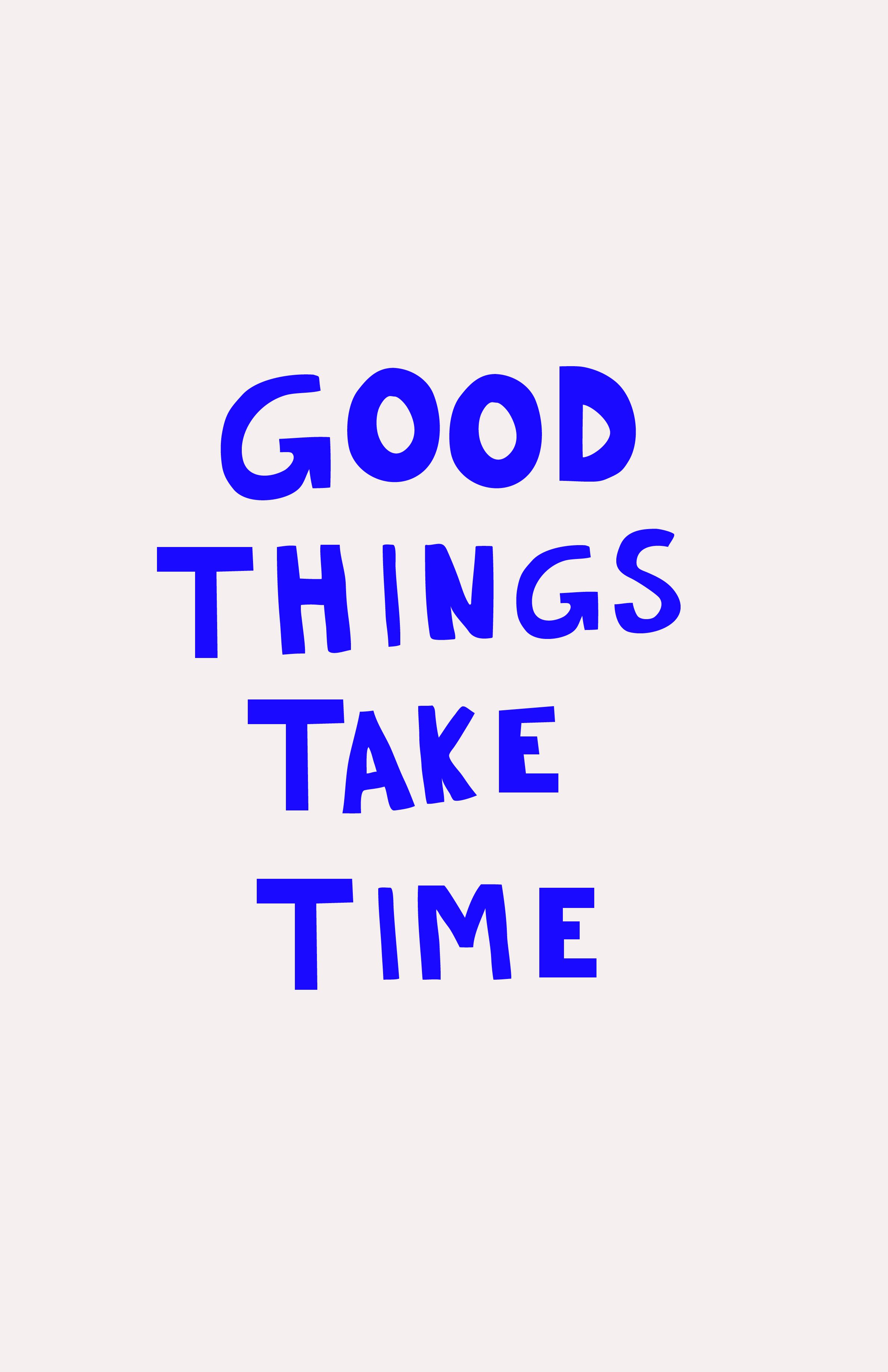 This is a minimalist typographic design featuring bold, capitalized text in a vibrant blue against a neutral, light gray background. The design relies purely on the stark contrast between the text and the background to convey a direct, encouraging message.