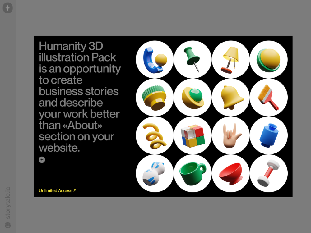 This design uses a clean, high-contrast layout to promote a digital asset pack by pairing compelling text with a grid of vibrant 3D illustration icons. The visual language is modern and professional, effectively showcasing the creative utility of the illustrations.