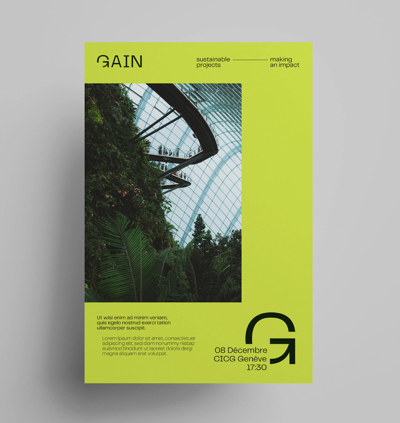 This design employs a clean, modern aesthetic, pairing bold typography and impactful photography to convey a message about sustainability and environmental impact. The visual language is professional, relying on high contrast and a restricted color palette to achieve a focused, editorial feel.
