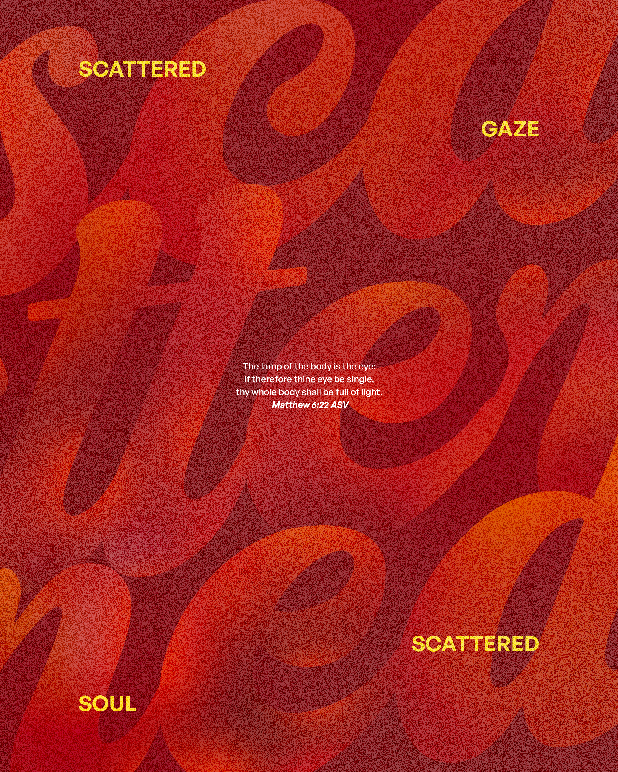 This is a bold, typographic design characterized by large, overlapping, and textured sans-serif lettering set against a deep, warm red background. The composition is dynamic, using scale and layering to create depth and visual rhythm.