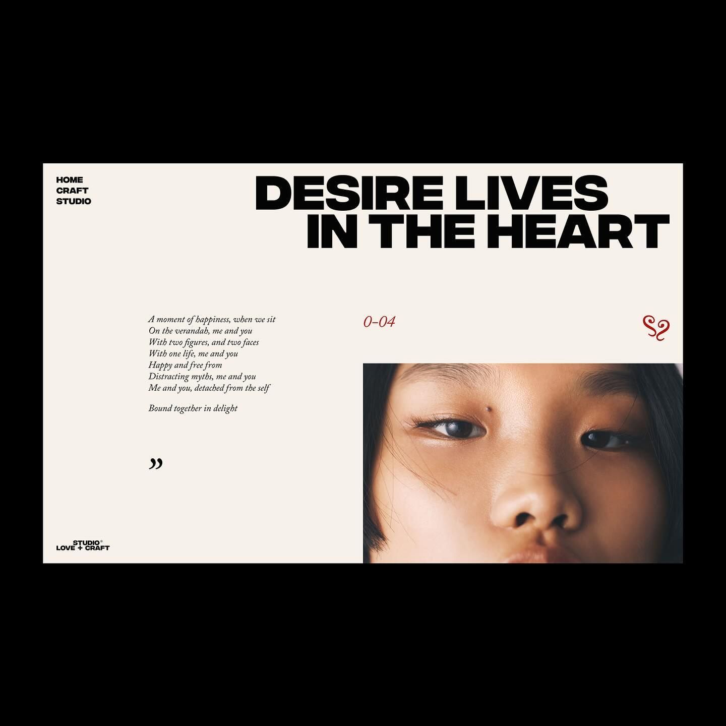 This design employs a sophisticated minimalist aesthetic, pairing stark typography and high contrast with an intimate photographic element. The visual language is clean and focused, successfully evoking themes of passion, desire, and delicate craftsmanship through stark juxtaposition.