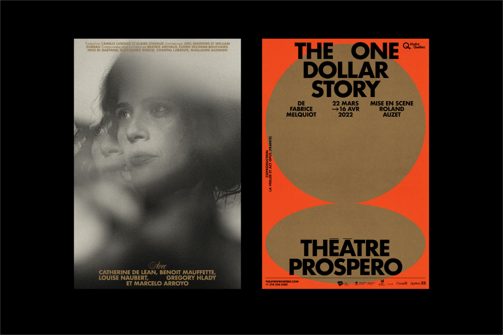 The design is clean, modern, and sophisticated, utilizing a high-contrast palette of deep charcoal/black and warm orange accents. It employs strong typographic hierarchy to clearly present information about a theatrical production, balancing evocative imagery with structured text.