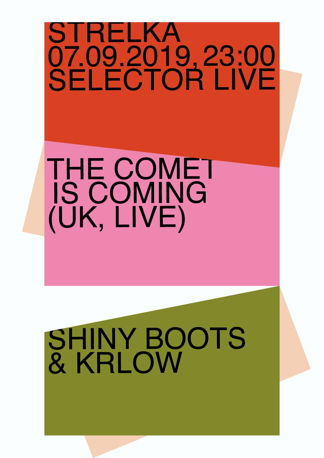 This design utilizes a bold, modular block structure to present event information clearly. The visual language relies on high-contrast color blocking and stacked typography to create a dynamic, promotional feel. The overall aesthetic is clean yet vibrant, suitable for event marketing.