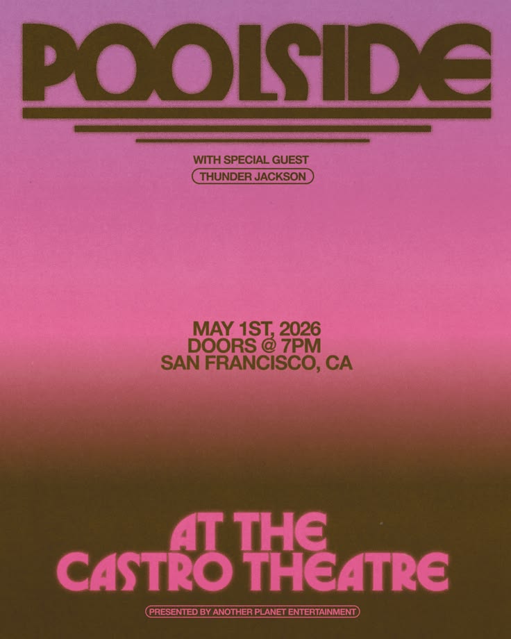 The poster utilizes a stark, high-contrast design dominated by pink/magenta tones against a muted background. The typography is bold and blocky, conveying an energetic yet slightly retro or vintage concert announcement feel.