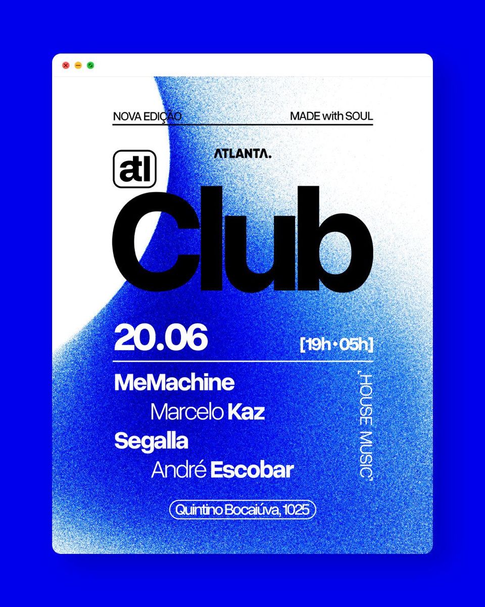 The design is modern and high-contrast, utilizing a vibrant blue background with stark white and black typography to create a bold, energetic club promotion. The layout is clean and focused, emphasizing the event details and branding.