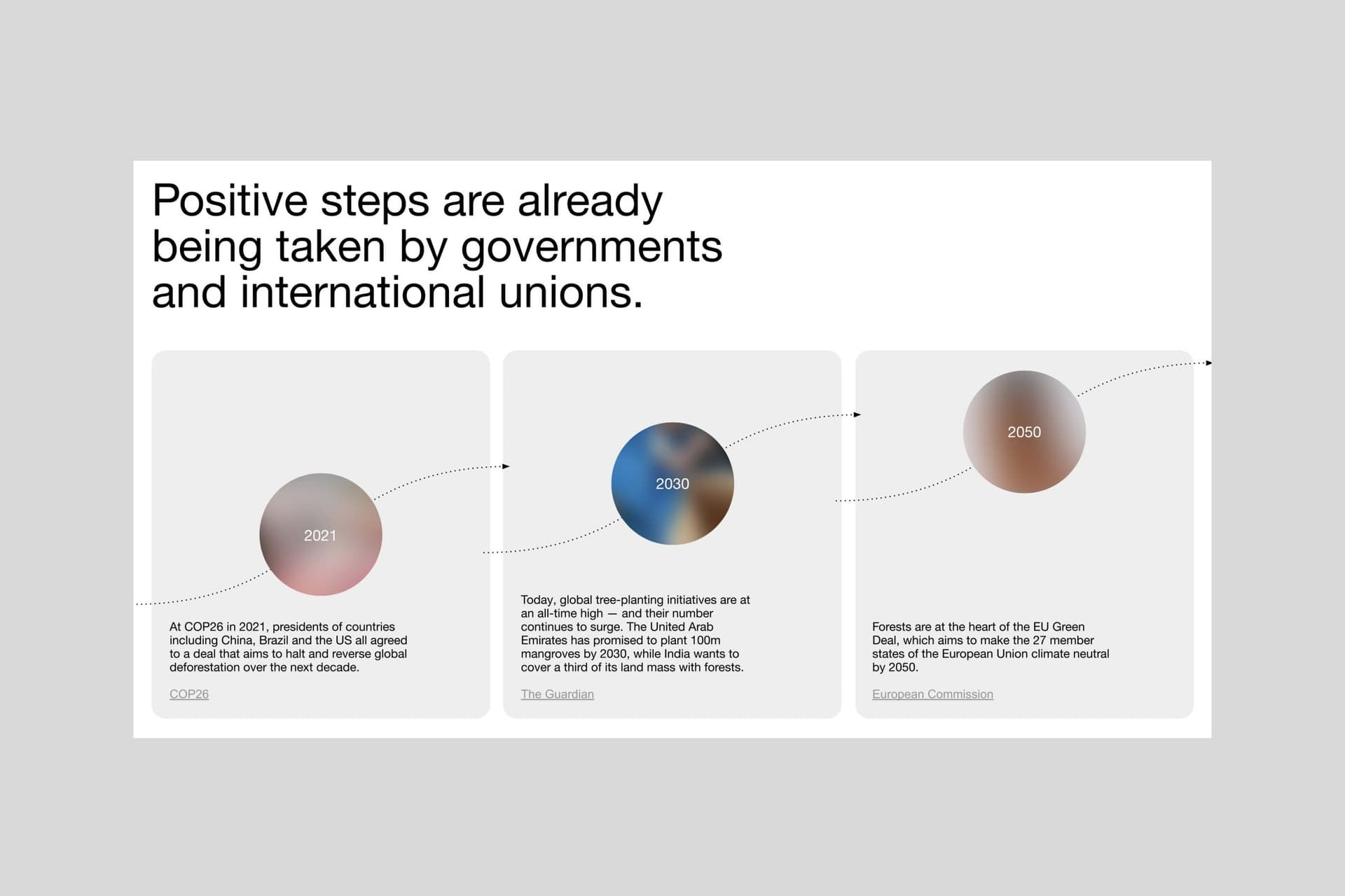 This is a clean, modern presentation of information using a minimalist aesthetic dominated by deep reds and warm yellows against a muted, textured background. The design conveys a sense of environmental focus and forward-thinking optimism through its stark yet warm color choices.