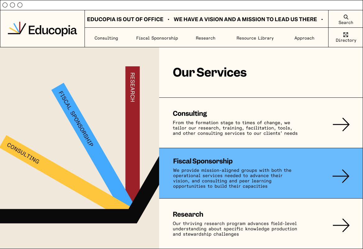 The design uses a clean, modern, and somewhat abstract visual metaphor to represent services, employing a diagonal line graph structure. The layout is clear, segmenting different service offerings with distinct colored lines that move upwards, suggesting growth or progression.