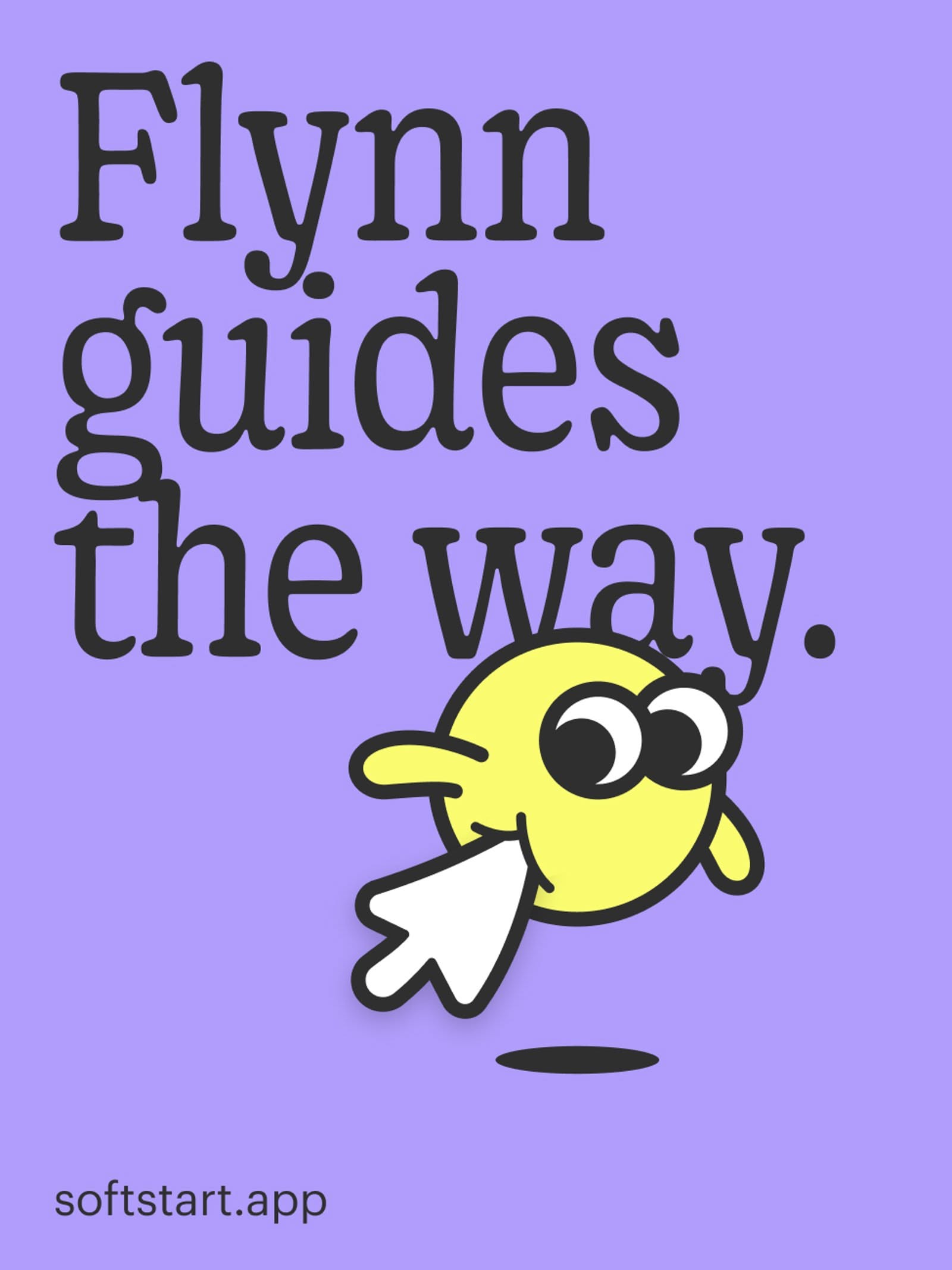 This design utilizes a clean, flat visual language combining bold typography with a simple, friendly character illustration against a soft pastel background. The composition is minimalist and focuses attention directly on the instructional text and the guiding element.