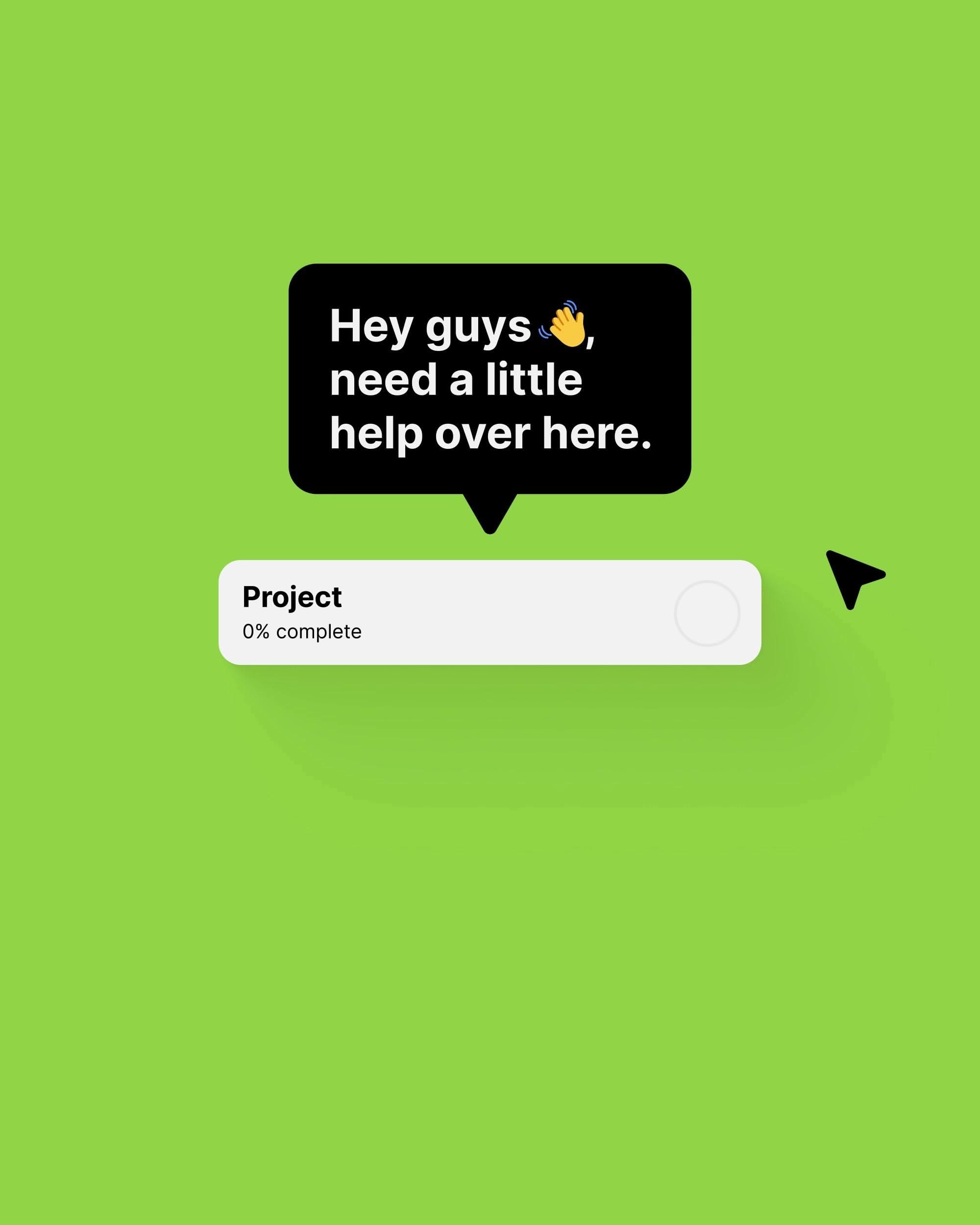 This design utilizes a clean, flat visual language with high contrast between the vibrant lime green background and stark black text elements. The overall feel is casual, friendly, and direct, suggesting a simple user interface or social media prompt.
