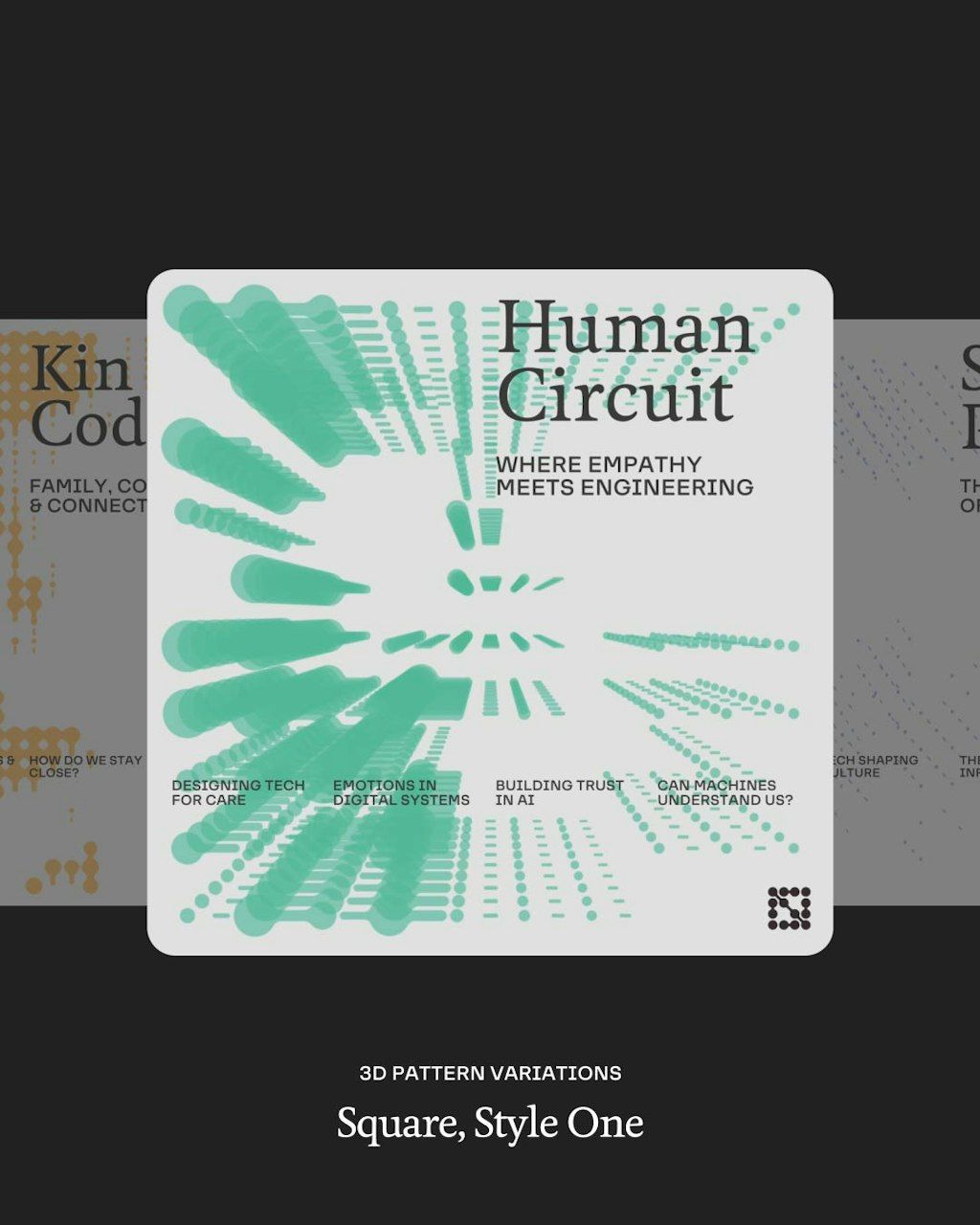 A modern, minimalist design featuring an abstract radial pattern in soft teal and mint green tones on a light background. The composition combines geometric data visualization aesthetics with organic, flowing shapes that suggest human connection and growth. The tagline 'Where Empathy Meets Engineering' establishes a contemporary, purpose-driven visual identity.