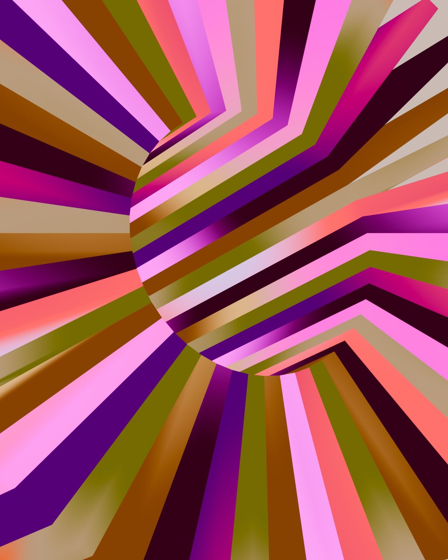 This image features a vibrant, radial pattern characterized by sweeping, diagonal stripes that converge towards a central point, creating a dynamic sense of movement and depth. The design utilizes a rich, saturated color palette to achieve a modern, energetic, and somewhat psychedelic visual experience.