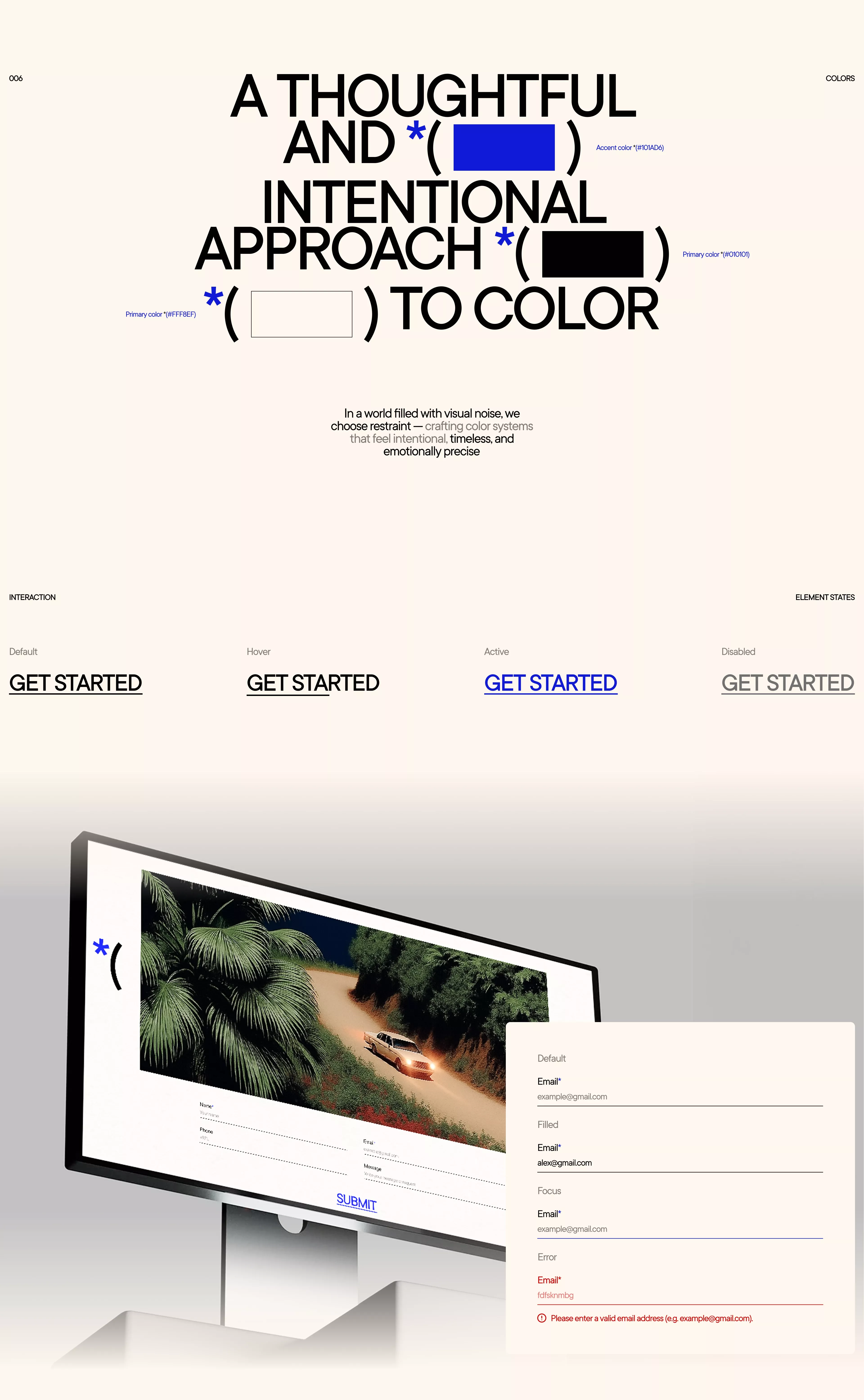 The design employs a minimalist, high-contrast aesthetic with clean typography and ample white space to convey a thoughtful and intentional approach. The layout is balanced, using strong typographic hierarchy to guide the viewer through the concept.