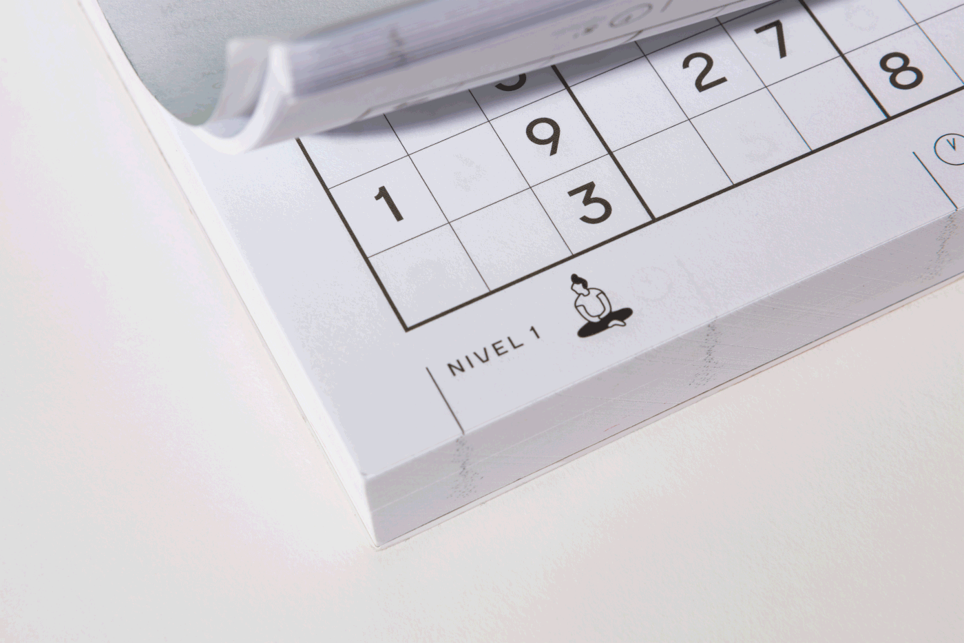 A minimalist sudoku puzzle game with a clean, modern aesthetic featuring a white plastic device with a sliding puzzle grid and numbered tiles. The design emphasizes simplicity and tactile interaction, with a focus on functional elegance and accessibility for casual puzzle enthusiasts.