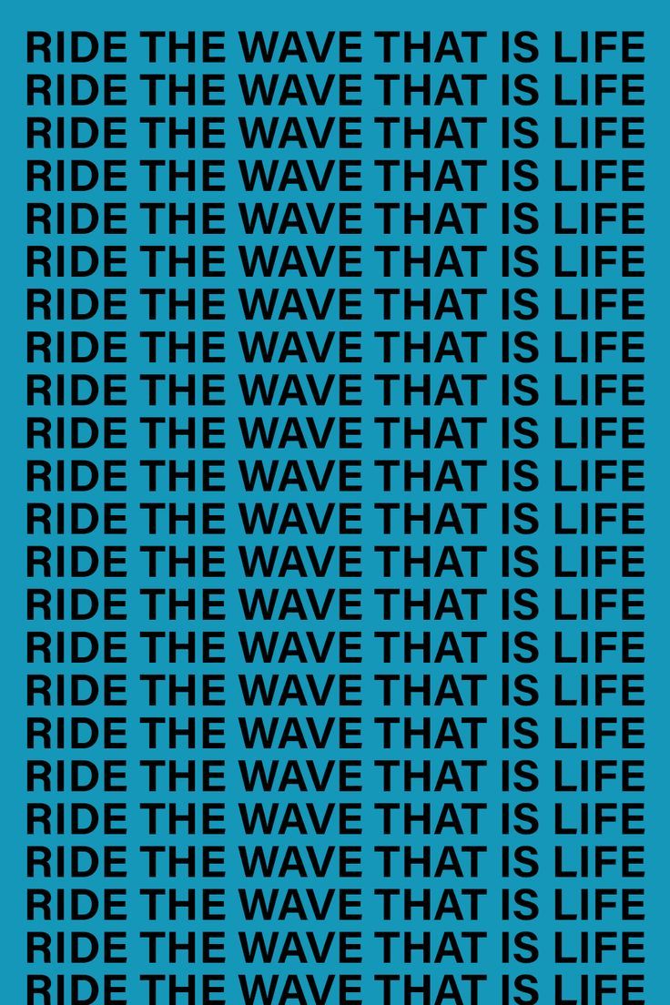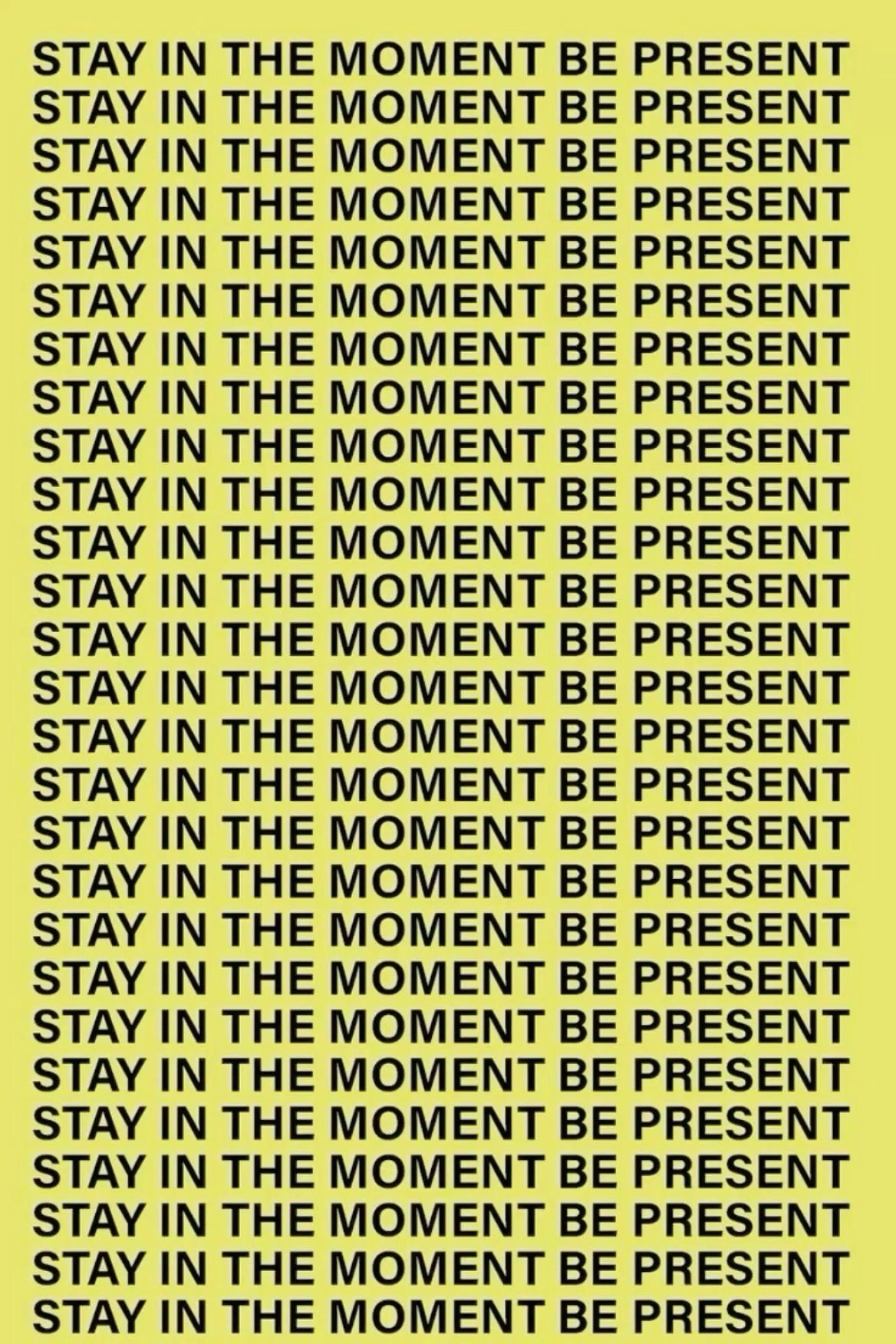 The image consists of repetitive, stacked text in a simple, high-contrast format, creating a dense and insistent visual texture. The design relies entirely on the repetition of a single phrase to convey a sense of persistence or mindfulness.