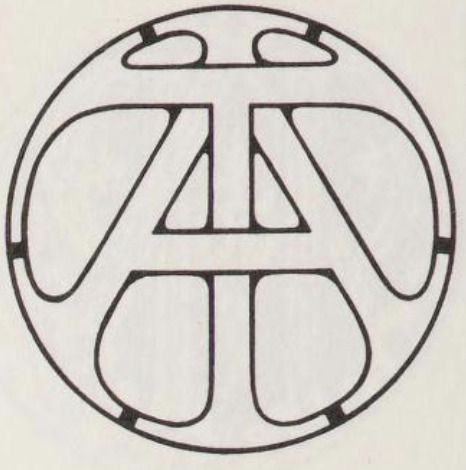 A minimalist line-drawn scarab beetle or circular emblem featuring geometric segmentation and symmetrical compartments. The design employs clean, continuous linework with a modernist aesthetic, creating a balanced circular composition with central cross-like division.
