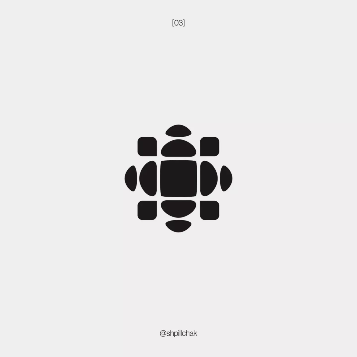 A minimalist geometric icon composed of symmetrical black shapes arranged in a cross or mandala-like pattern on a light gray background. The design uses simple, bold forms to create a balanced, abstract symbol with a modern, tech-forward aesthetic.