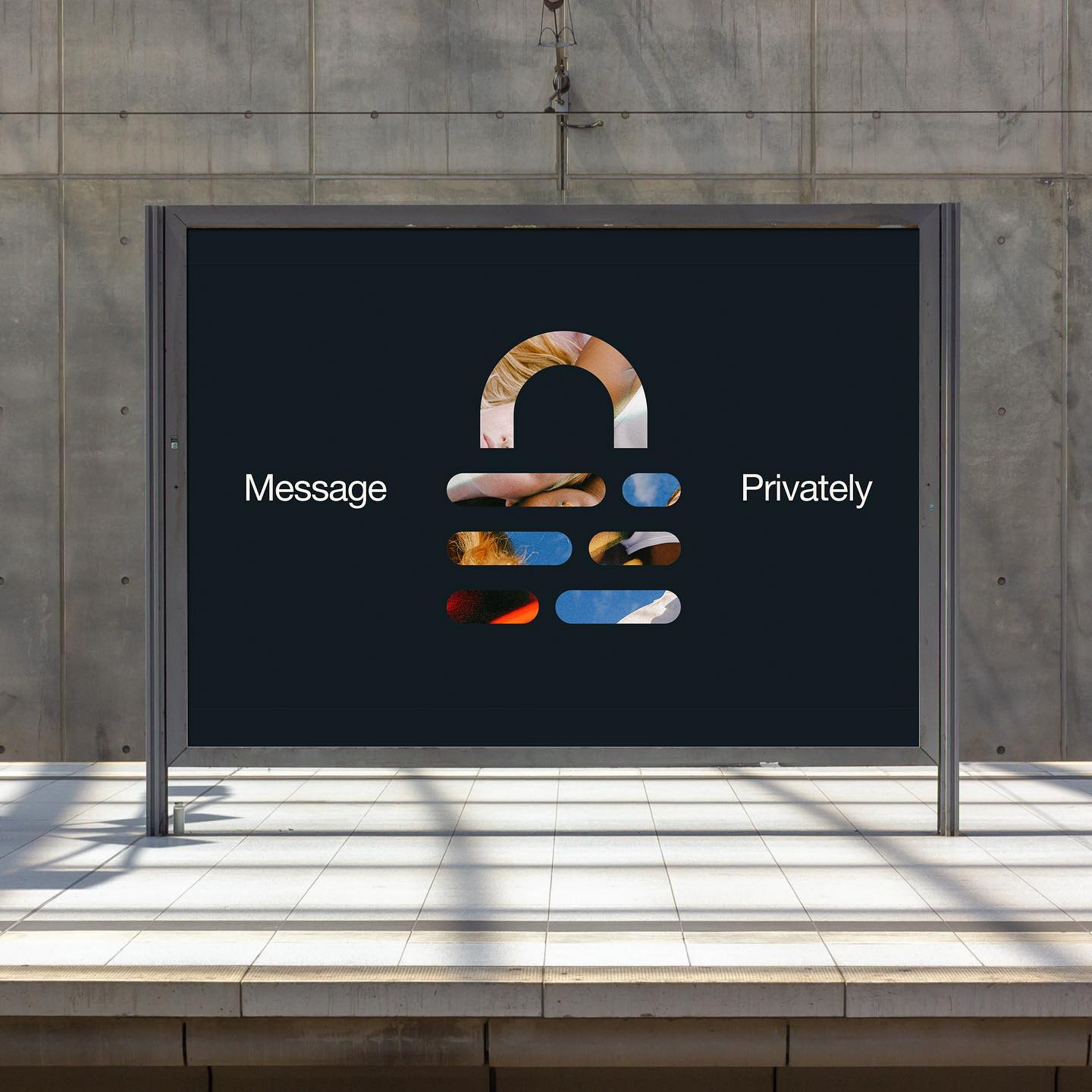 This design utilizes a stark, modern aesthetic by contrasting a clean digital interface against the raw texture of an industrial concrete background. The visual language is minimalist, employing high contrast and simple typography to convey a sense of privacy and official communication.