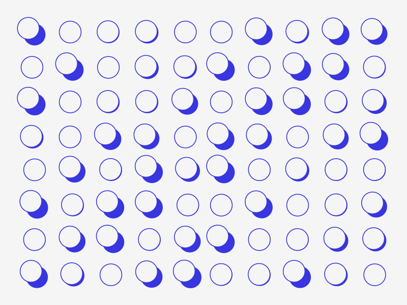 A minimalist grid pattern featuring circles in various states of fill, creating a moon-phase or progress visualization aesthetic. The design uses a restrained color palette of blue and light gray on a neutral background, evoking a clean, data-driven visual language with subtle motion or progression implied through the filled segments.