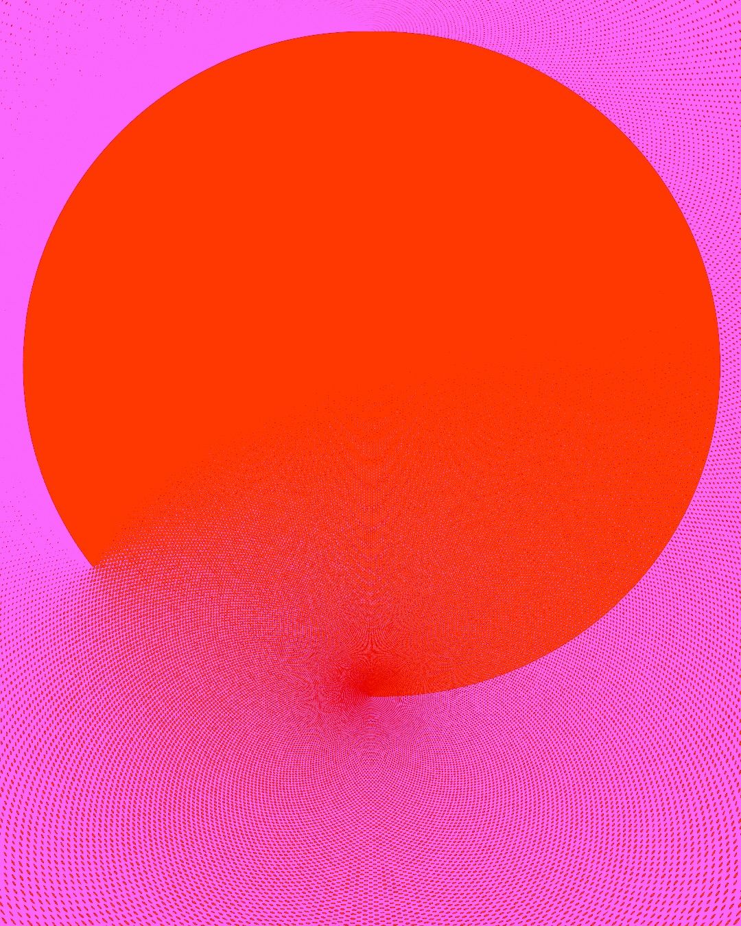 This abstract composition uses high-saturation color fields and soft textural gradients to create a dynamic, modern visual experience. The image balances the intense solidity of the circular focal point against the smooth, pulsating glow of the surrounding pink and magenta hues. The overall feel is energetic and highly contemporary.