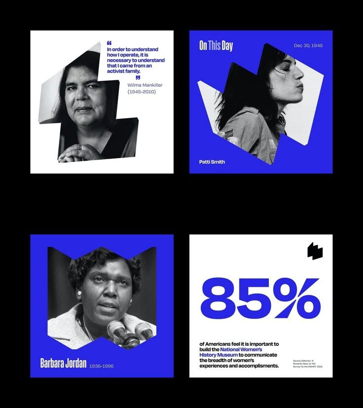 This is a modular, journalistic design featuring four distinct portrait and statistic elements arranged in a grid format. The visual language relies heavily on high contrast between monochrome photography and solid color blocks to create a serious, commemorative tone.