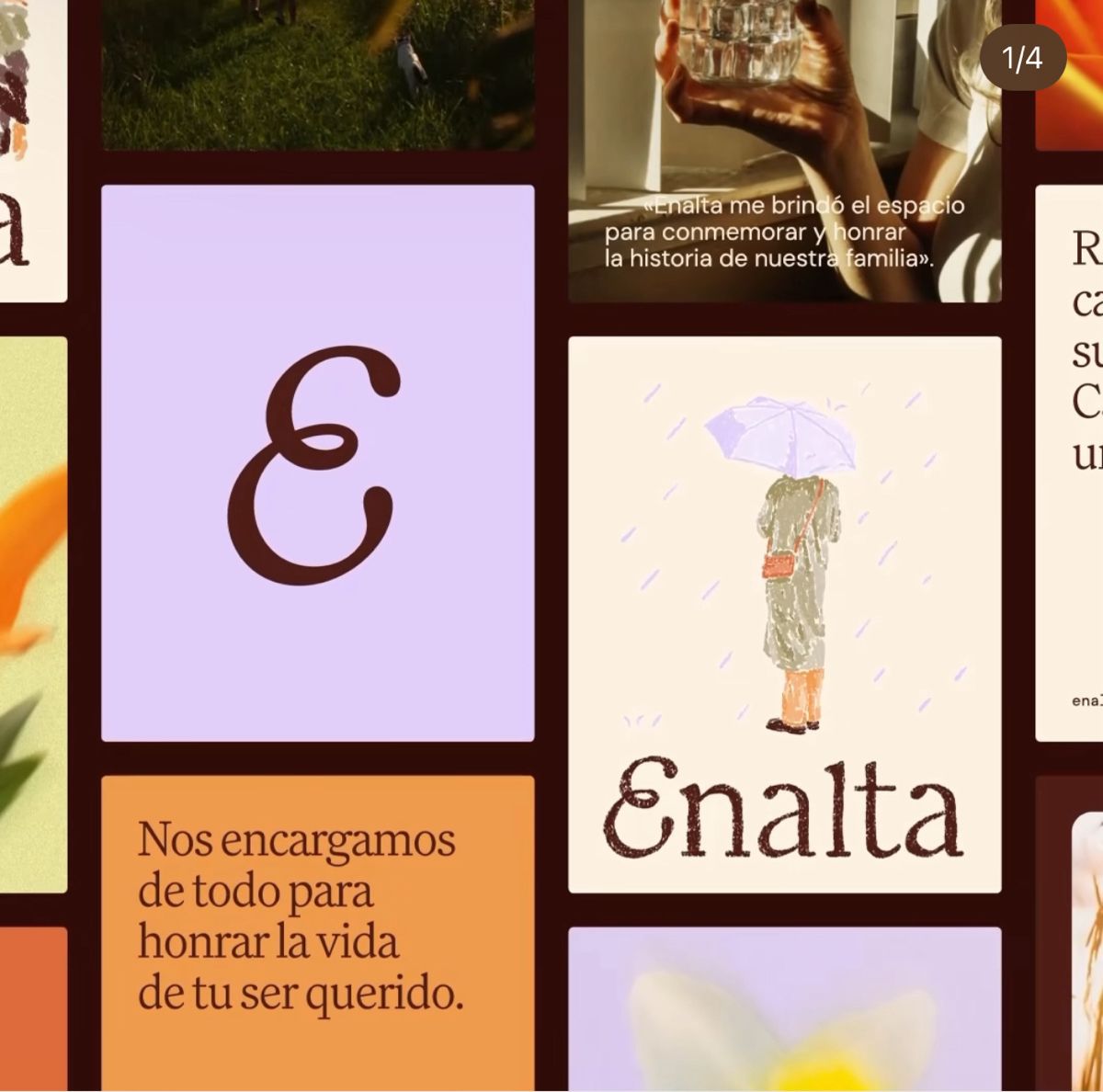 The image presents a clean, modern, and elegant visual grid featuring minimalist typography and soft, muted color tones. The design emphasizes a sense of heritage or personal legacy through the use of stylized script and simple, warm backgrounds.