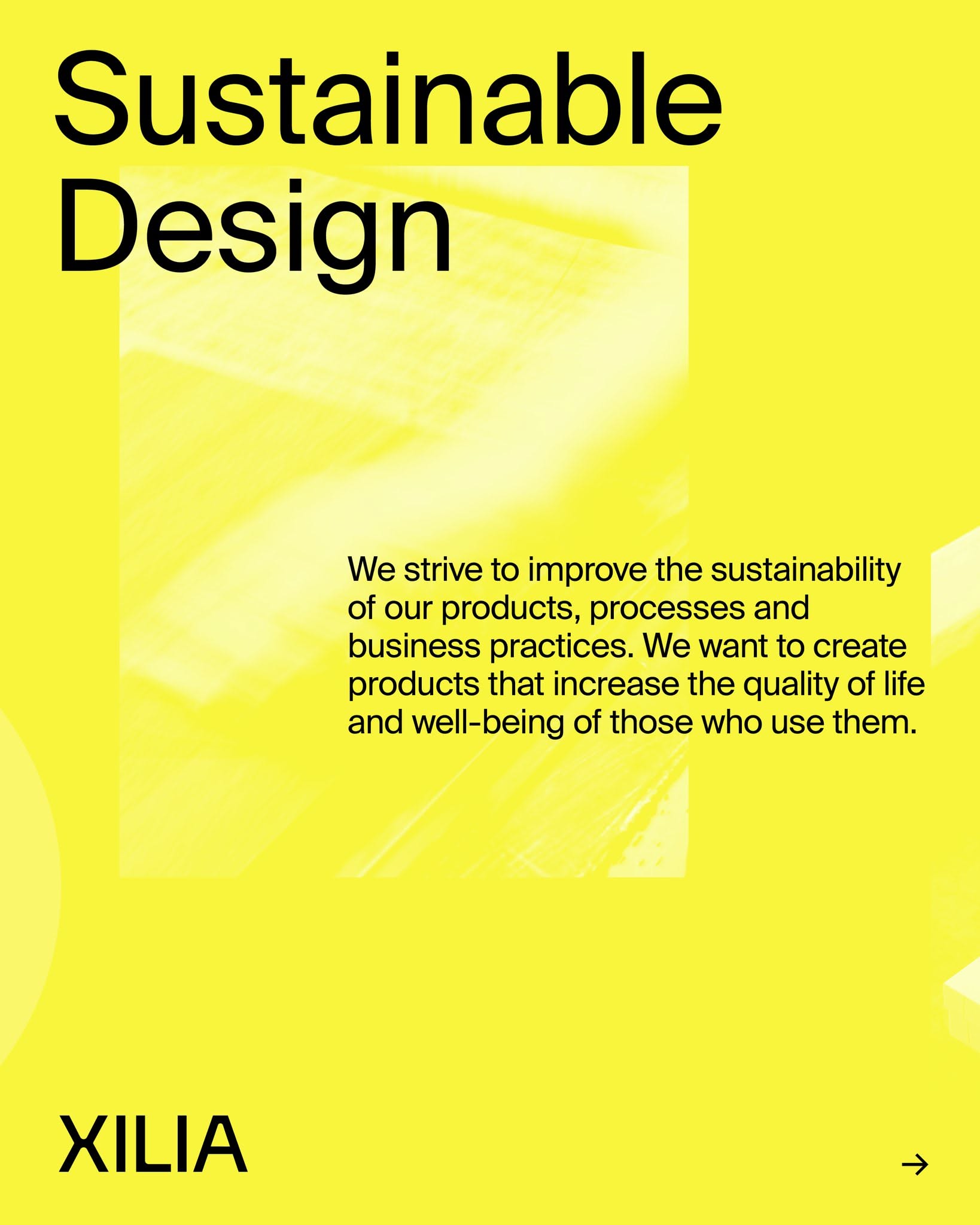 This design utilizes a bright, optimistic yellow palette and strong negative space to convey a message of clarity and environmental focus. The visual language is minimalist, relying on bold typography and subtle abstract lines to support the core theme of sustainable design.
