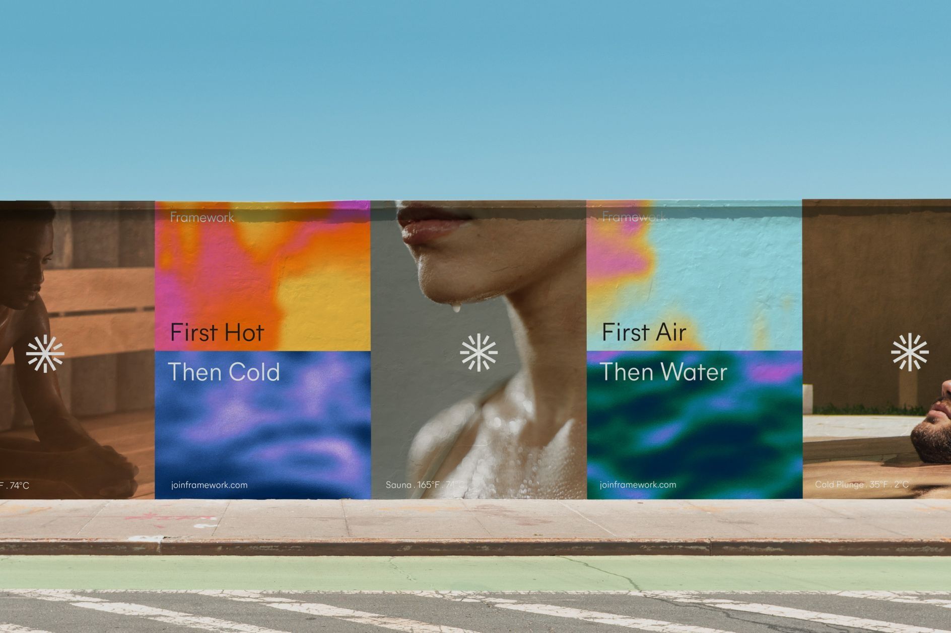 This image presents a clean, modular visual display, likely for a portfolio or branding showcase, using distinct color blocks to represent different concepts. The design is modern and minimalist, relying on strong juxtapositions of color and texture to convey sensory experiences.