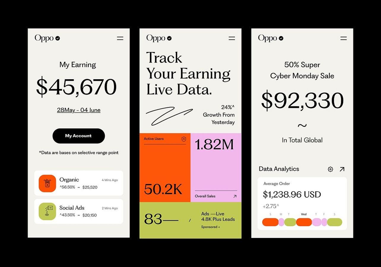 This design utilizes a clean, card-based layout typical of modern analytics dashboards, prioritizing data clarity and hierarchy. The visual language is minimalist yet functional, using distinct color blocks to segment different metrics effectively. The overall feel is professional, analytical, and highly organized.