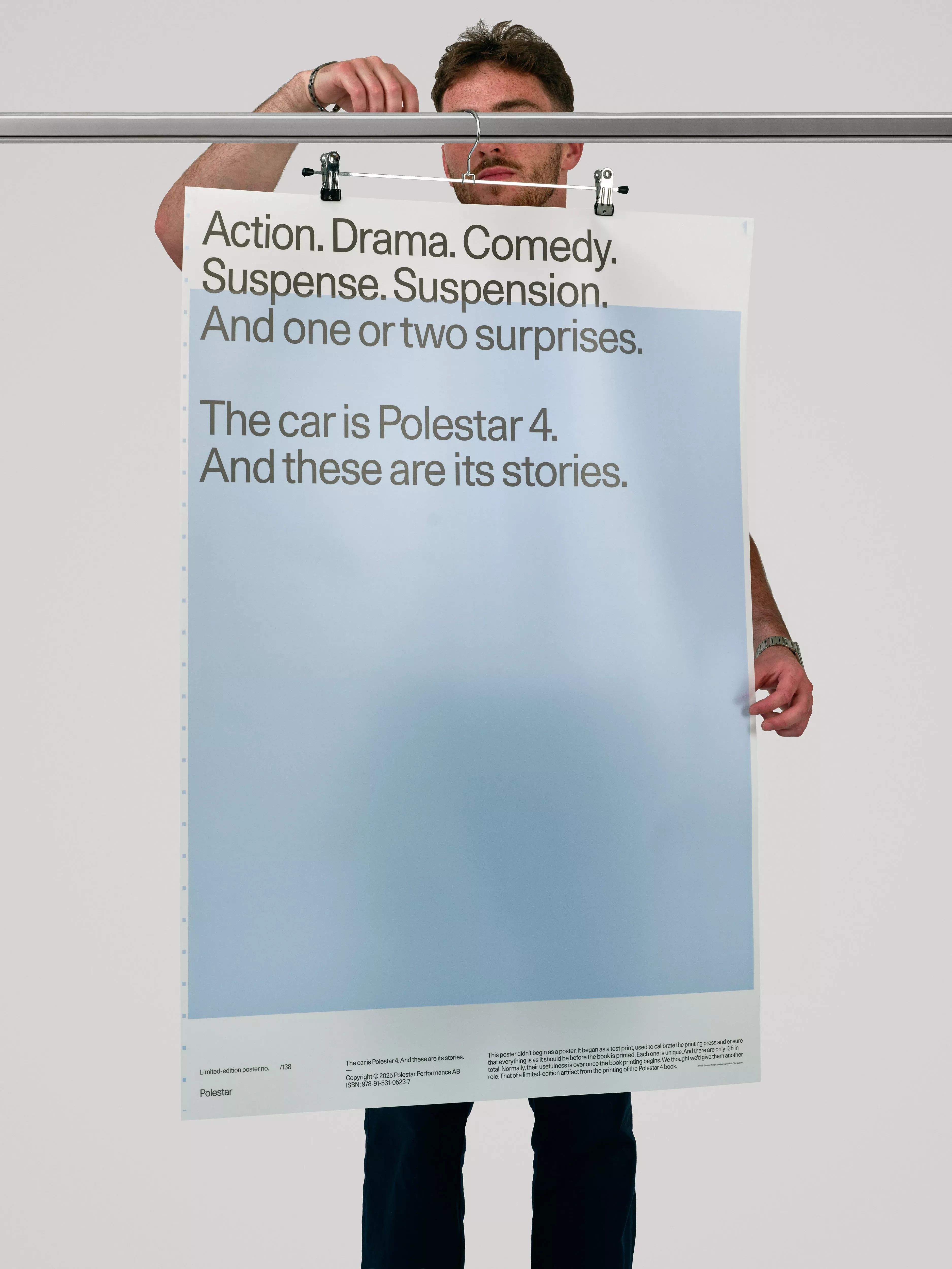 This design utilizes a stark, minimalist approach, employing strong capitalization and clear, punchy text to establish a dramatic tone. The visual language is direct and confident, relying heavily on typography and negative space to convey excitement about the subject matter.
