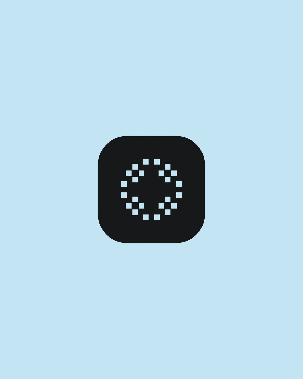 The image features a simple, dark square icon with a pattern of illuminated dots, set against a very light, pale blue background. The design is minimalist and geometric, suggesting a digital interface element or application symbol.