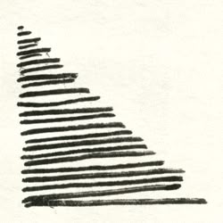 This image is a stark, abstract graphic composed entirely of parallel, horizontal lines that converge towards the upper left, creating a dynamic sense of direction or tapering form. The visual language is minimalist and linear, relying purely on line weight and negative space to convey structure.