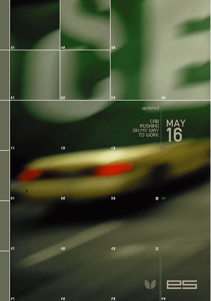 The image presents a grid-based, somewhat abstract composition overlaid with photographic elements and text annotations, suggesting a technical diagram or perhaps a stylized surveillance/mapping interface. The visual language is stark and functional, relying on high contrast between the dark background and the illuminated elements.