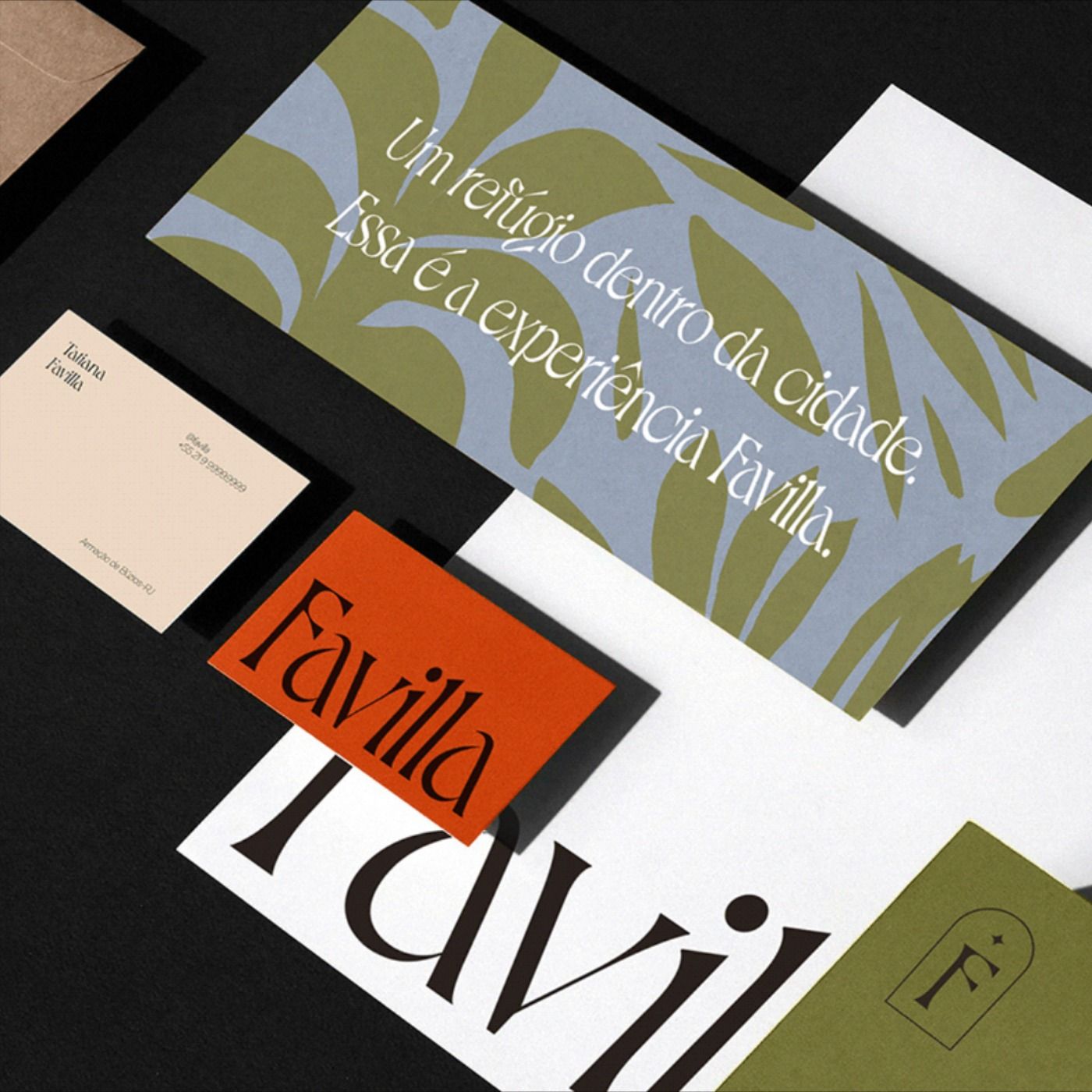 A sophisticated brand identity system featuring layered stationery with botanical motifs and refined typography. The design employs a restrained color palette and modernist layout principles, creating an elegant and culturally-informed visual language. The composition demonstrates careful attention to spatial relationships and typographic hierarchy across multiple collateral pieces.