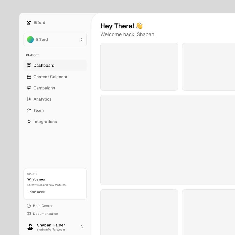 The design presents a clean, highly functional interface typical of modern SaaS applications, emphasizing clarity and easy navigation. The visual language relies heavily on ample white space to focus the user's attention on the content.