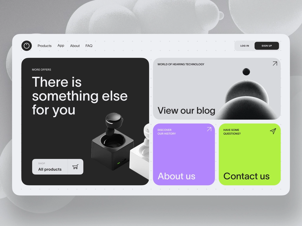 A modern SaaS landing page featuring a minimalist design with a dark hero section contrasted against a light background. The layout combines bold typography, geometric shapes, and vibrant accent colors to create a contemporary, tech-forward aesthetic with clear call-to-action elements.