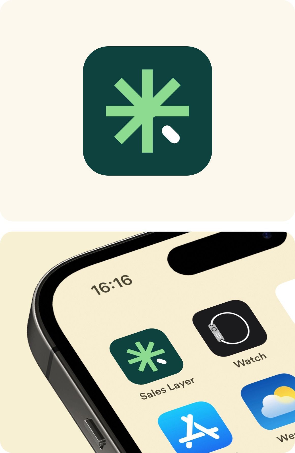 A clean, modern app icon design featuring a medical or healthcare symbol rendered in soft sage green on a dark teal rounded square background. The design demonstrates contemporary minimalist aesthetics with a subtle cursor element, suggesting a digital health or wellness application interface.