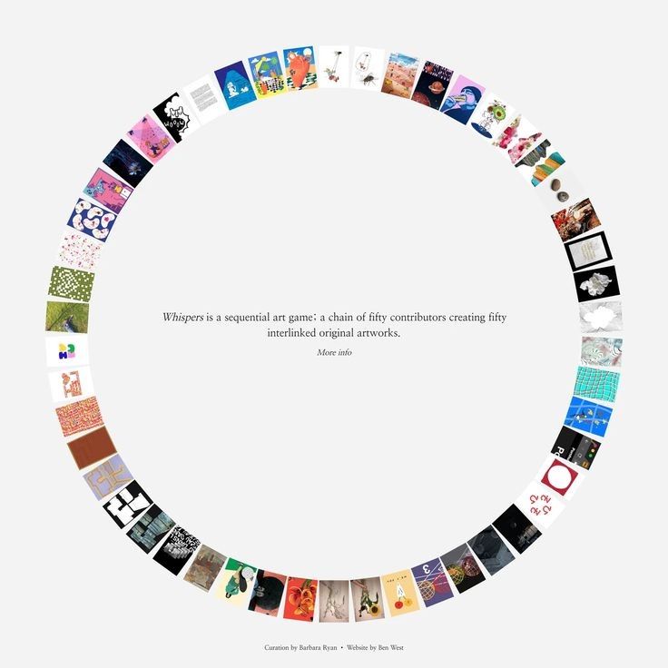 The image presents a circular, segmented composition showcasing numerous small artworks or contributions arranged in a continuous arc. The design is clean, minimalist, and emphasizes the collective nature of the work through its sequential arrangement.