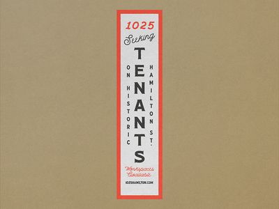 This design utilizes a vertical, centered composition with high contrast between the warm beige background and the striking red accents. The visual language blends elegant script typography with clean serif elements, creating an artisanal and refined aesthetic.