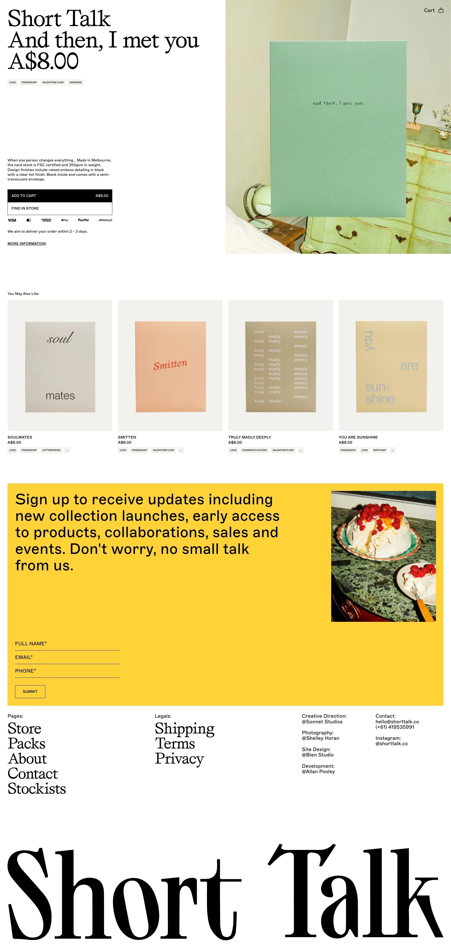 This image presents a minimalist, high-contrast design utilizing a pale yellow card against a dark background. The layout is clean and structured, employing simple, capitalized typography to convey a sense of curated, artisanal quality.