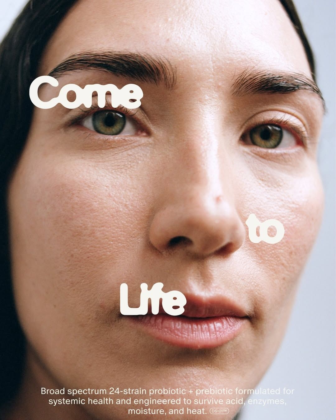 This image employs a clean, minimalist editorial style focusing intensely on natural skin texture and close-up portraiture. The visual language is calm and trustworthy, using soft lighting and precise text placement to convey efficacy and purity. The overall feel is premium, scientific yet serene, appealing to consumers seeking healthy, high-quality skincare.