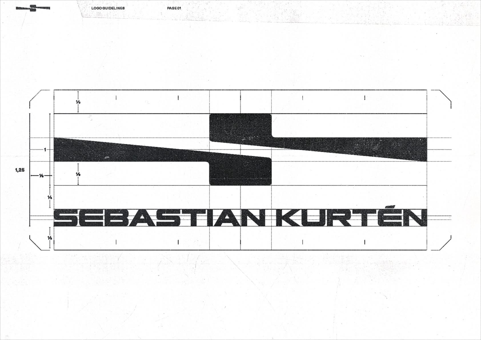 This design utilizes a stark, geometric grid structure to divide space, employing high contrast between black and white fields. The visual language is highly minimalist and technical, focusing on clear division and precise measurement. The overall feel is clean, clinical, and objective.
