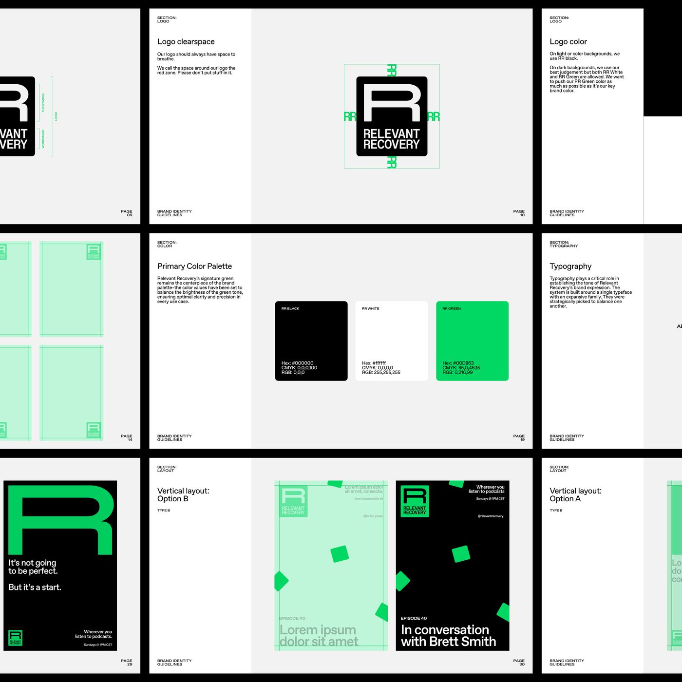 This design demonstrates a highly structured and minimalist visual language, emphasizing clarity through precise grid systems and restrained use of color. The style is professional, corporate, and focused entirely on providing a clean blueprint for branding elements.