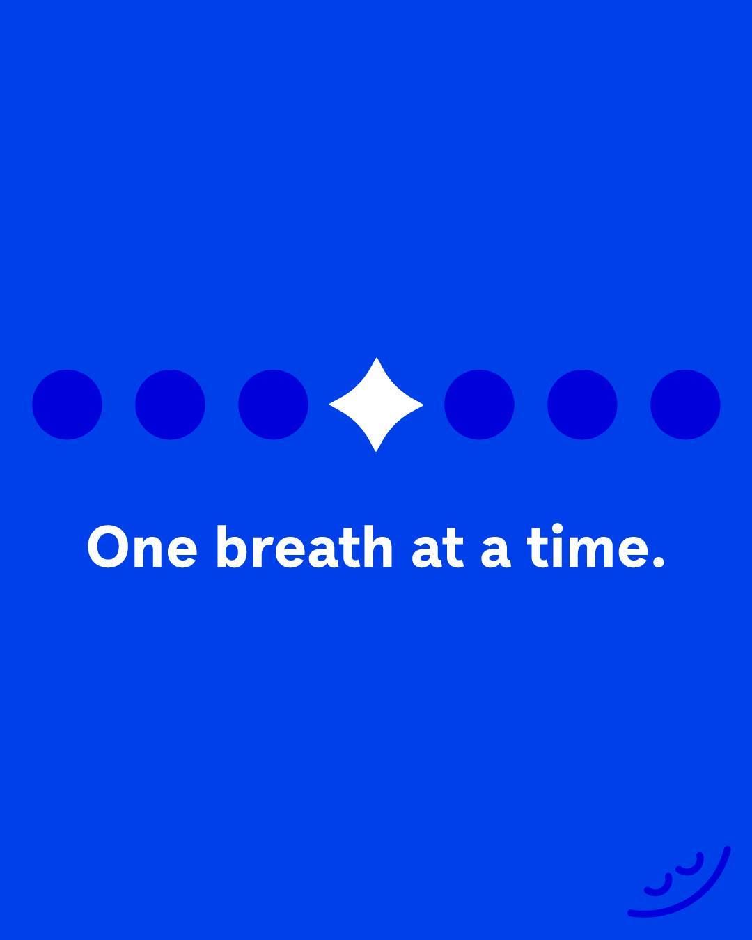 The design is minimalist and clean, utilizing a vibrant blue background to convey calmness and focus. It uses simple geometric elements (dots and a diamond) to create a visual rhythm, emphasizing the core message of mindful breathing.