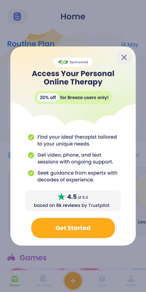 The design presents a clean, light, and modern interface for a health or therapy service, utilizing soft pastel tones and ample white space to convey trust and accessibility. The layout is structured with clear sections and prominent calls to action, aiming for a calm yet professional user experience.