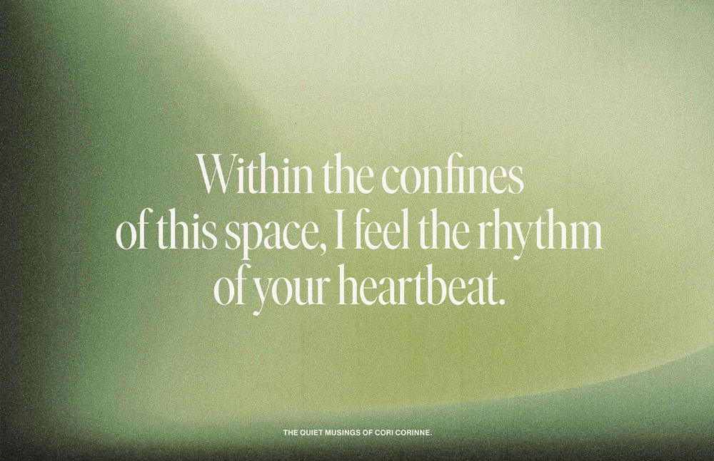 This design utilizes a soft, muted color palette and generous negative space to create a deeply intimate and serene atmosphere. The composition is highly minimalist, focusing the viewer's attention entirely on the central, emotive text and its delicate typography.